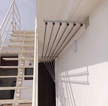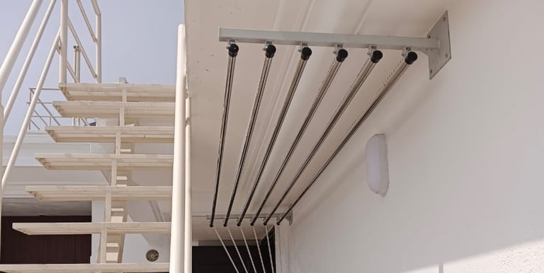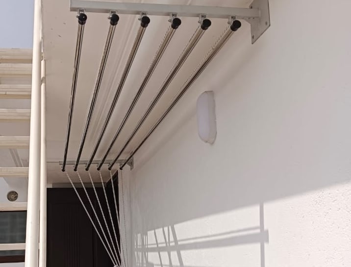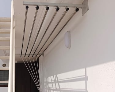 Wall-mounted cloth hangers are installed on walls or balcony railings and are perfect for compact spaces. They are sturdy, easy to use, and provide efficient drying without affecting movement or aesthetics.